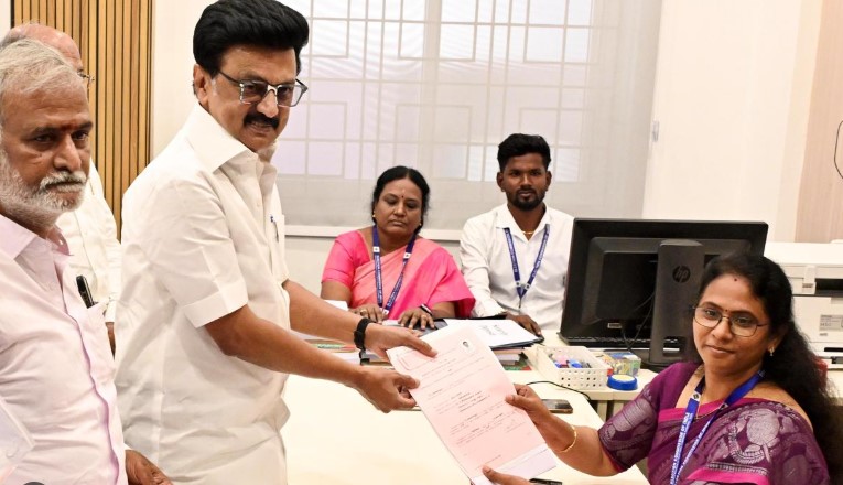 வழக்கமான தேர்தலைவிட வரும் சட்டமன்ற தேர்தலில் நான்கு முனைப்போட்டி நிலவும் என்பதால், அரசியல் களமே சூடுபிடிக்க தொடங்கி உள்ளது. அனைத்து அரசியல் கட்சிகளும் கிட்டத்தட்ட வேட்பாளர்களை அறிவித்துவிட்டனர். இந்நிலையில், வேட்புமனு தாக்கல் தொடங்கிய முதல் நாளே தமிழக முதலமைச்சர் மு.க.ஸ்டாலின் தனது வேட்புமனுவை தாக்கல் செய்தார். கொளத்தூர் சட்டமன்றத் தொகுதியில் நான்காவது முறையாகப் போட்டியிடும் முதலமைச்சர், செம்பியம் பேப்பர் மில்ஸ் சாலையில் உள்ள மாநகராட்சி அலுவலகத்தில் அமைக்கப்பட்டுள்ள தேர்தல் அலுவலகத்திற்கு வந்து, தேர்தல் நடத்தும் அதிகாரியான எஸ்.சாந்தியிடம் தனது வேட்புமனுவை தாக்கல் செய்தார். அப்போது,அமைச்சர் சேகர் பாபு உள்ளிட்டோர் உடனிருந்தனர்.