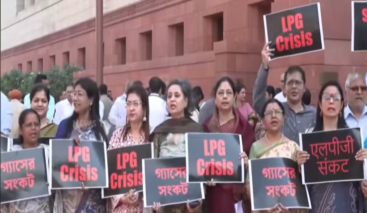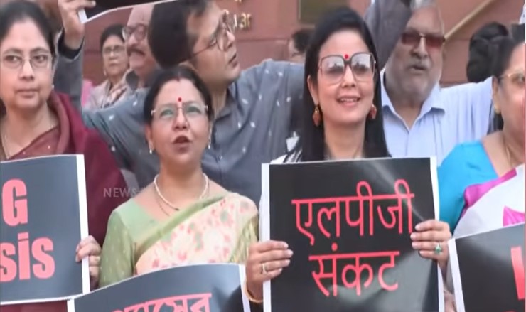 சமையல் எரிவாயு தட்டுப்பாட்டை போக்க நடவடிக்கை எடுக்காத ஒன்றிய அரசை கண்டித்து நாடாளுமன்ற வளாகத்தில் திமுக, திரிணாமுல், சமாஜ்வாடி உட்பட எதிர்க்கட்சி எம்பி.க்கள் ஆர்ப்பாட்டம் நடத்தினர். அப்போது ‘‘மோடி ஜி, மோடிஜி - தேவை எல்பிஜி’’ என்பது போன்ற கோஷங்களை எழுப்பி எம்பிக்கள் ஆர்ப்பாட்டத்தில் ஈடுபட்டனர்.