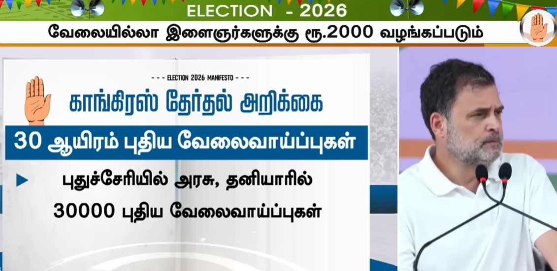புதுச்சேரியில் காங்கிரஸ் - திமுக வேட்பாளர்களை ஆதரித்து, ராகுல் காந்தி வாக்கு சேகரித்தார். துணை நிலை ஆளுநரை வைத்துக் கொண்டு புதுச்சேரியை பாஜக ஆட்டிப் படைப்பதாக விமர்சித்தார்.