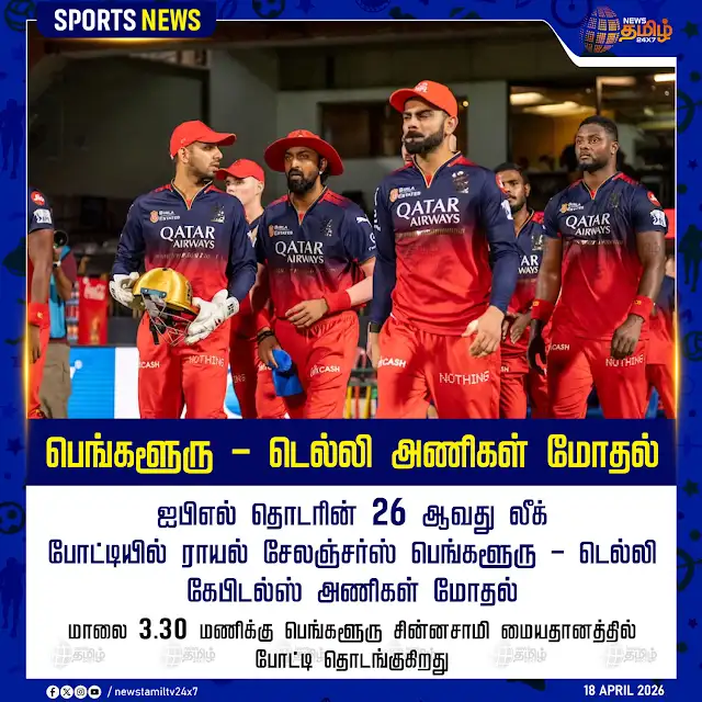 பெங்களூருவில் பிற்பகல் 3:30 மணிக்கு நடைபெறும் போட்டியில் ஆர்.சி.பி டெல்லி அணிகள் மோதுகின்றன. இதனைத் தொடர்ந்து ஐதராபாத்தில் இரவு 7:30 மணிக்கு நடைபெறும் மற்றொரு போட்டியில் சென்னை - ஐதராபாத் அணிகள் பலப்பரீட்சை நடத்துகின்றனர்.