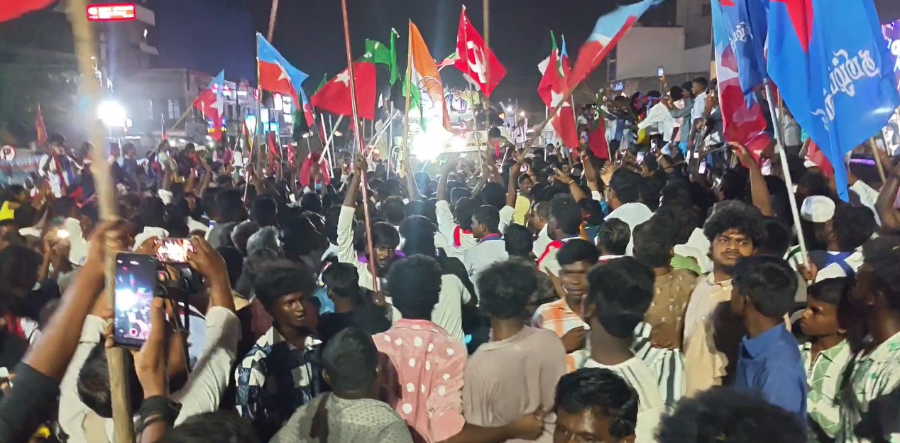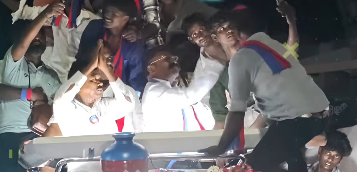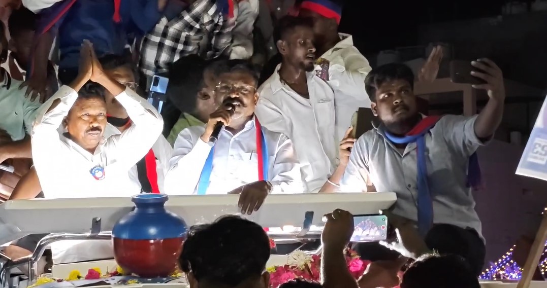 சட்டமன்றத் தேர்தலுக்கு 2 வாரங்களே உள்ள நிலையில் திமுக, அதிமுக, தவெக, நாதக என அரசியல் கட்சி தலைவர்களும், வேட்பாளர்களும் பிரச்சாரத்தில் சூறாவளிபோல் சுற்றி சுழன்று வருகின்றனர். அந்தவகையில், தேனி மாவட்டம் பெரியகுளம் தனி சட்டமன்றத் தொகுதியில் போட்டியிடும் விடுதலை சிறுத்தைகள் கட்சி வேட்பாளர் சக்திவேலை ஆதரித்து அக்கட்சியின் தலைவர் திருமாவளவன் பிரச்சாரம் மேற்கொண்டார். அப்போது அங்கு அடுத்தடுத்து நடந்த சில சம்பவங்கள் முகச்சுழிப்பை ஏற்படுத்தும் வகையிலேயே இருந்தன.