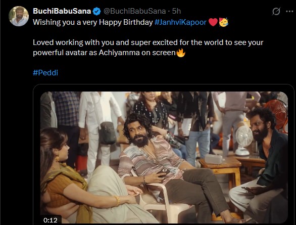 இந்த நிலையில், நடிகை ஜான்விகபூரின் பிறந்த நாளான இன்று மார்ச் 6ஆம் தேதி, ’ஆச்சியம்மா’ எனும் கதாபாத்திரத்தில் நடித்துள்ள ’பெத்தி’ திரைப்படத்தின் படப்பிடிப்பு வீடியோவை இயக்குநர், சமூக வலை தளத்தில் வெளியிட்டு வாழ்த்து தெரிவித்துள்ளார்.