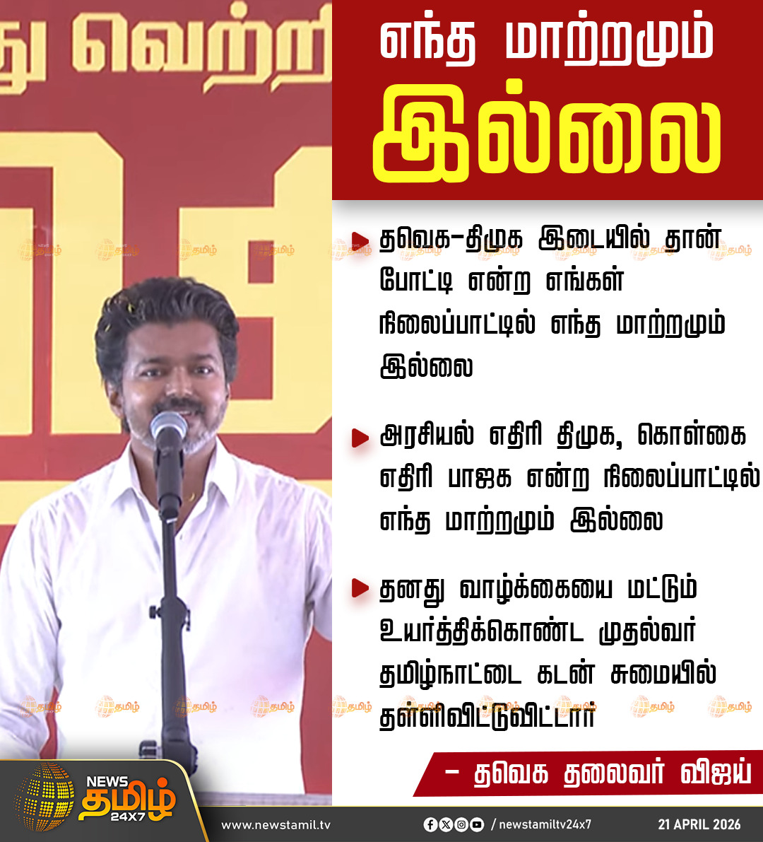 தவெக - திமுக இடையில் தான் போட்டி என்ற எங்கள் நிலைப்பாட்டில் எந்த மாற்றமும் இல்லை