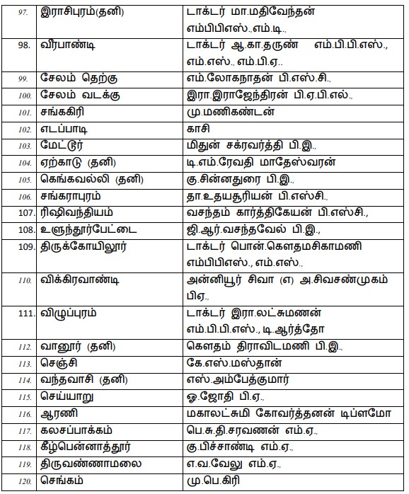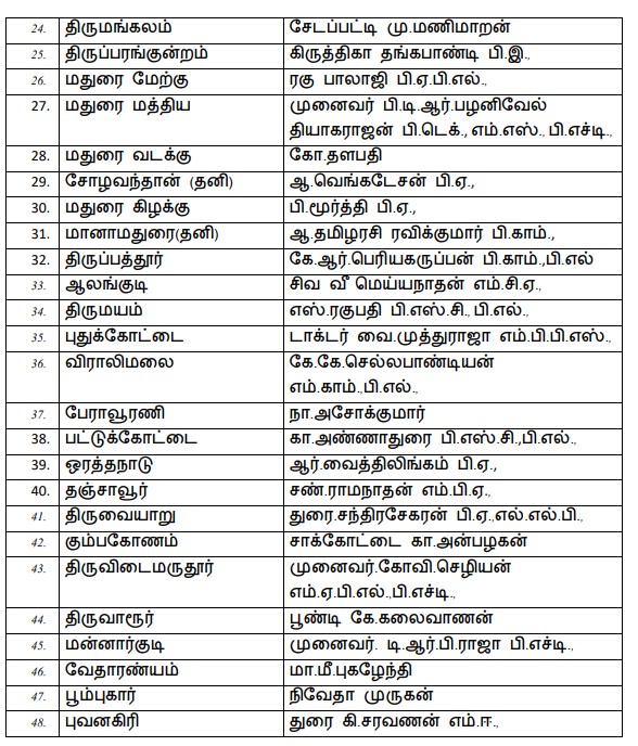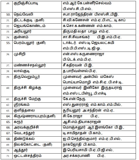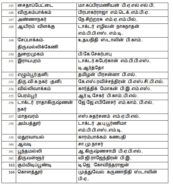 164 தொகுதிகளில் திமுக நேரடியாகப் போட்டி, கூட்டணிக் கட்சிக்கு ஒதுக்கப்பட்ட தொகுதிகளில் 11 தொகுதிகளில் உதயசூரியன் சின்னத்தில் போட்டி
