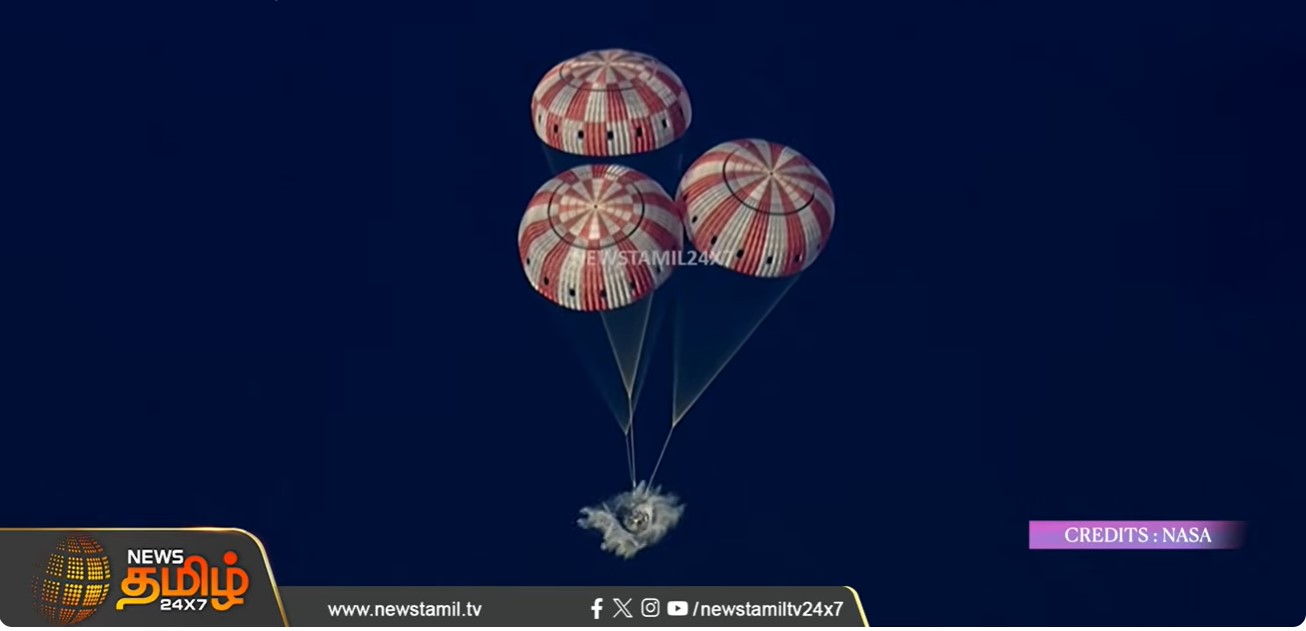 பசிஃபிக் பெருங்கடலில் வெற்றிகரமாக தரையிறங்கியது ஓரியன் விண்கலம். 10 நாள் ஆய்வை முடித்துக் கொண்டு நிலவில் இருந்து ஆர்டெமிஸ்-2 குழுவினர் திரும்பி உள்ளனர்.