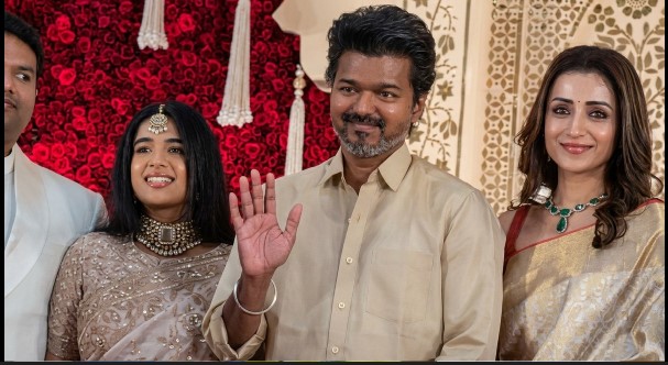 இந்த நிலையில், தவெக தலைவர் விஜய், திரிஷா உடன் சென்னையில் மார்ச் 5ஆம் தேதி நடைபெற்ற திருமண வரவேற்பு நிகழ்ச்சியில் ஒரே காரில் வந்து, பங்கேற்றனர். ஏ.ஜி.எஸ். தயாரிப்பு நிறுவன தயாரிப்பாளர்களில் ஒருவரான கல்பாத்தி சுரேஷ் மகன் திருமண வரவேற்பு நிகழ்ச்சியில், இருவரும் ஒரே நிற ஆடை அணிந்தும் வந்திருந்தனர். இதுதொடர்பான வீடியோ, புகைப்படங்கள் சமூக வலைதளங்களில் பகிரப்பட்டு வருகிறது. இவை வைரலான நிலையில், இந்த சம்பவம் பேசு பொருளாகி உள்ளது.