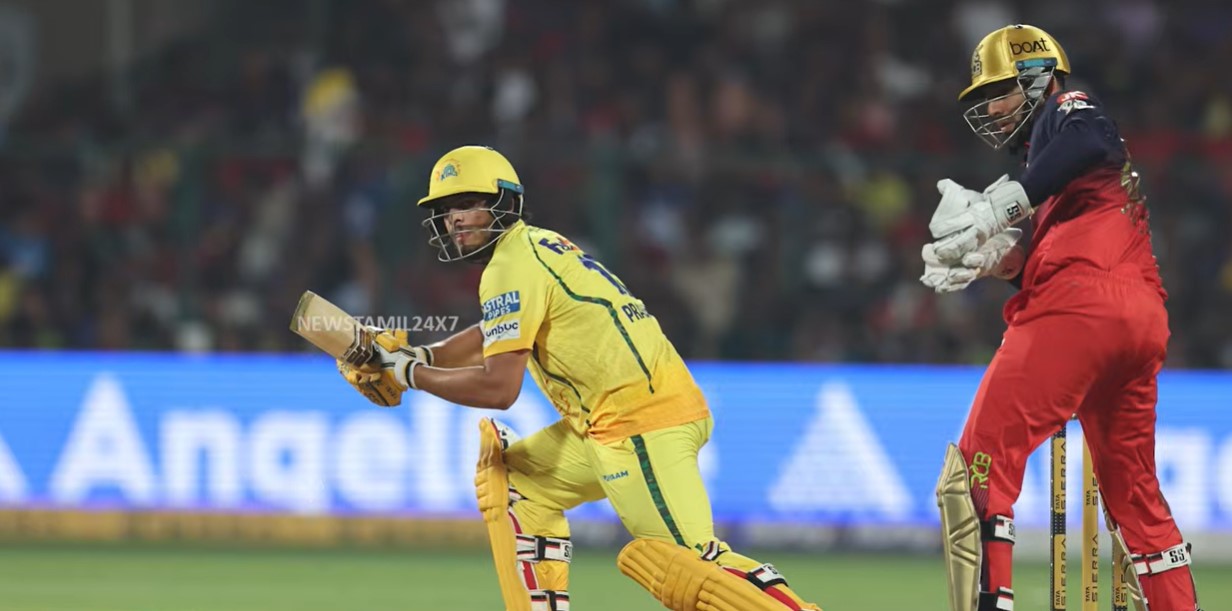 நடப்பு ஐபிஎல் தொடரின் 11ஆவது லீக் போட்டியில் சென்னை சூப்பர் கிங்ஸ், ராயல் சேலஞ்சர்ஸ் பெங்களூரு அணிகள் மோதின. ஆர்சிபியின் சொந்த மைதானமான சின்னசாமி மைதானத்தில் நடந்த இந்த போட்டியில், டாஸ் வென்ற சிஎஸ்கே கேப்டன் ருதுராஜ் கெய்க்வாட் முதலில் பந்துவீச்சை தேர்வு செய்தது தவறான முடிவாக அமைந்தது.