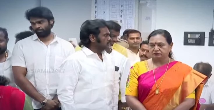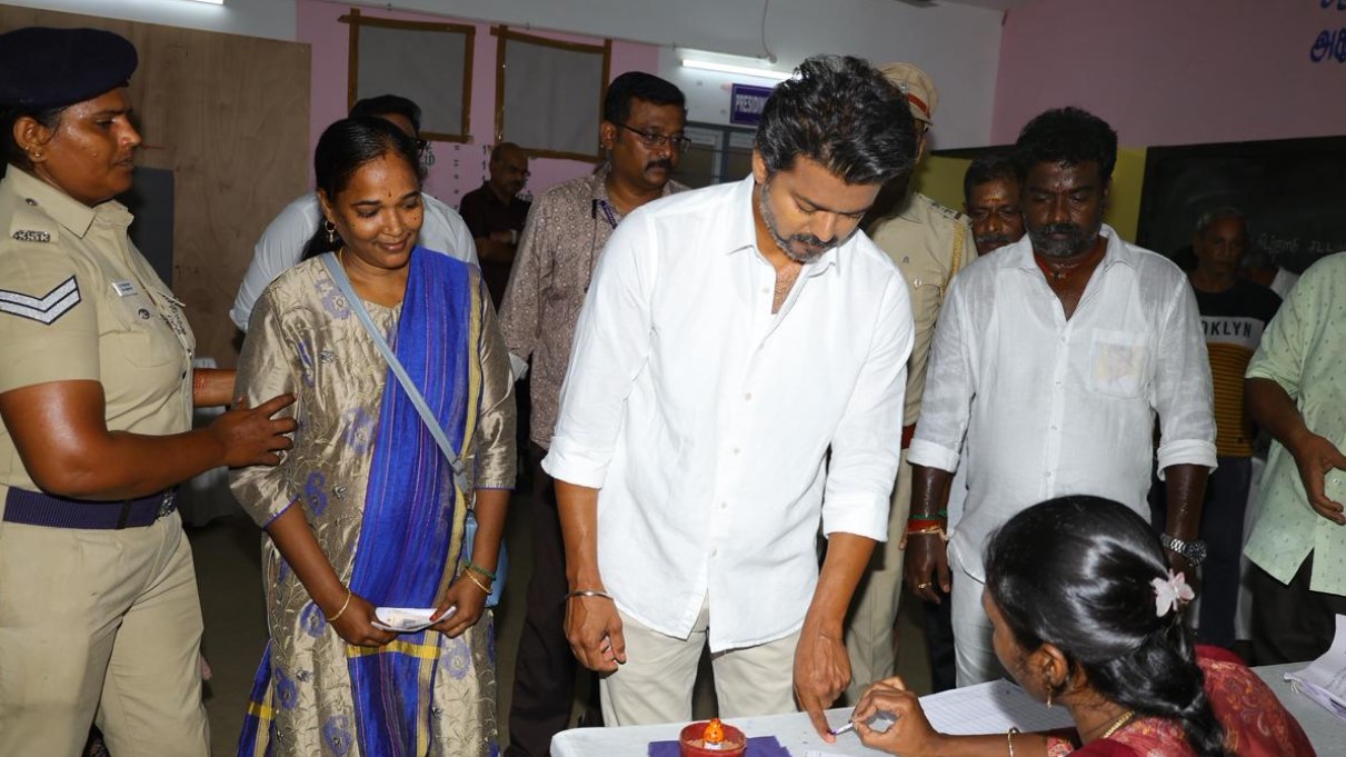 த.வெ.க. தலைவர் விஜய், நீலாங்கரை வாக்குச்சாவடியில் ஜனநாயக கடமையை நிறைவேற்றினார். நீலாங்கரை வீட்டில் இருந்து புறப்படும் போதே தொண்டர்கள் புடை சூழ காரில் புறப்பட்டுச் சென்ற விஜய், மாநகராட்சி பள்ளியில் அமைக்கப்பட்டுள்ள வாக்குச்சாவடியில் வாக்கினை பதிவு செய்தார். விஜய்யை பார்க்க வாக்குச்சாவடியில் ஏற்கனவே ஏராளமான ரசிகர்கள், தொண்டர்கள் குவிந்திருந்த நிலையில், போலீசாரும், பவுன்சர்களும் பத்திரமாக அழைத்துச் சென்றனர்.