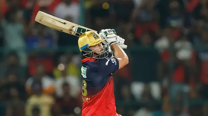 சென்னை அணிக்கு எதிரான ஆட்டத்தில் அதிரடியாக விளையாடிய ஆர்சிபி வீரர் டிம் டேவிட், ஒரே ஓவரில் 4 சிக்சர்கள் உள்பட 30 ரன்கள் அடித்து அனைவரும் மிரள வைத்தார்.