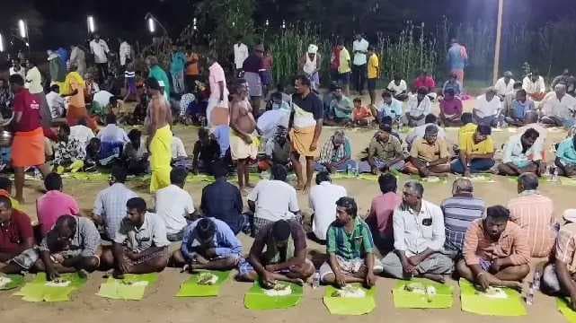 தேனி மாவட்டம், ஆண்டிப்பட்டி அருகே உள்ள டி.அணைக்கரைப்பட்டி கிராமத்தில், சடையாண்டி கோயில் உள்ளது. இந்தக் கோயிலில் ஒவ்வொரு ஆண்டும் ஐப்பசி மாதம் திருவிழா கொண்டாடப்படுகிறது. நள்ளிரவில் கொண்டாடப்படும் இந்த திருவிழாவில் ஆண்கள் மட்டுமே பங்கேற்க வேண்டும் என்பது ஐதீகம். இந்த அசைவ விருந்தில் ஆயிரக்கணக்கான ஆண்கள் பங்கேற்று உணவருந்தினர். ஆண்கள் மட்டுமே பங்கேற்ற சடையாண்டி கோயிலில், விடிய விடிய அசைவ விருந்து வழங்கப்பட்ட சம்பவம், தேனி மாவட்டம் முழுவதும் பேசு பொருளாகியுள்ளது.