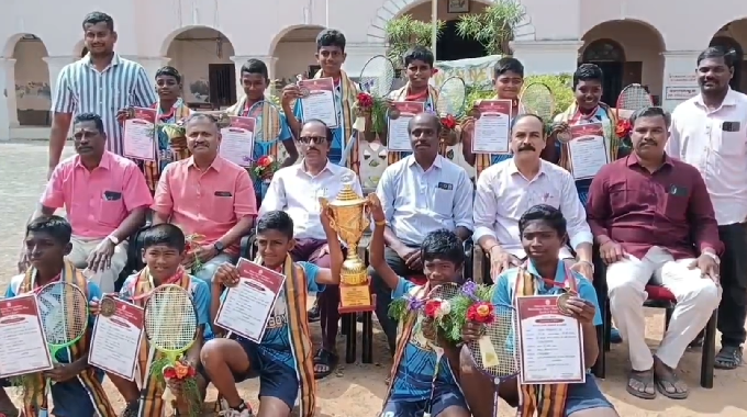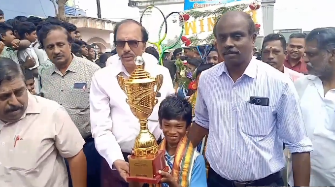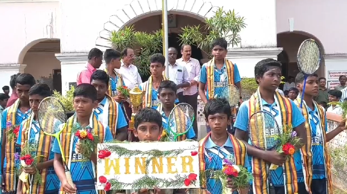 இந்த நிலையில் இன்று காலை திருவாரூர் வருகை தந்த பூப்பந்தாட்ட குழுவினருக்கு பள்ளி மாணவர்கள் மற்றும் ஆசிரியர்கள் திருவாரூர் நகராட்சி அருகில் பூங்கொத்து கொடுத்து வரவேற்பு அளித்து ஊர்வலமாக அழைத்து வந்தனர்.