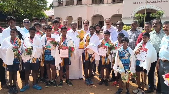 போட்டியில் பங்கேற்று வெற்றி பெற பயிற்சி அளித்த உடற்கல்வி இயக்குனர் ஞானசேகரன் உடற்கல்வி ஆசிரியர்கள் மணிகண்டன், ஹரி பிரதீப் ஆகியோரும் பாராட்டப்பட்டனர். 49ஆண்டுக்கு பிறகு மாநில அளவில் இப் பள்ளி வெற்றி பெற்றுள்ளது என்பது குறிப்பிடத்தக்கது.