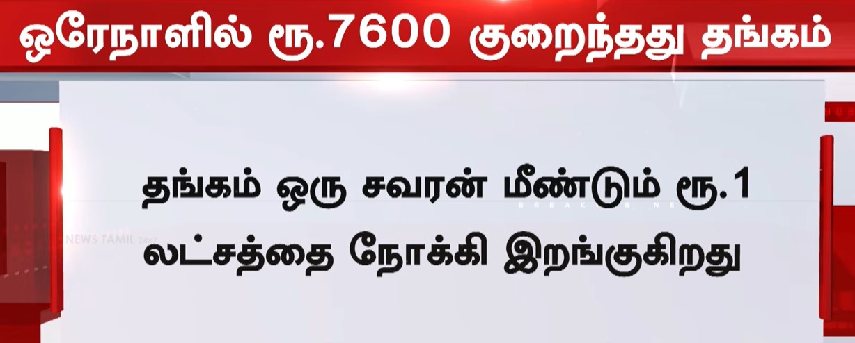 இந்த நிலையில், ஒரே நாளில் இரண்டு முறை சரிந்து ஒரு லட்சம் ரூபாயை நோக்கி தங்கத்தின் விலை இறங்கி உள்ளது. காலையில் 5,360 ரூபாயும், பிற்பகலில் 2,240 ரூபாயும் குறைந்து, ஒரு சவரன் தங்கம் ரூ.1,01,360க்கு விற்பனை ஆனது. ஒரு கிராம் ஆபரணத் தங்கத்தின் விலை ரூ.12,670 ஆக சரிந்தது.
